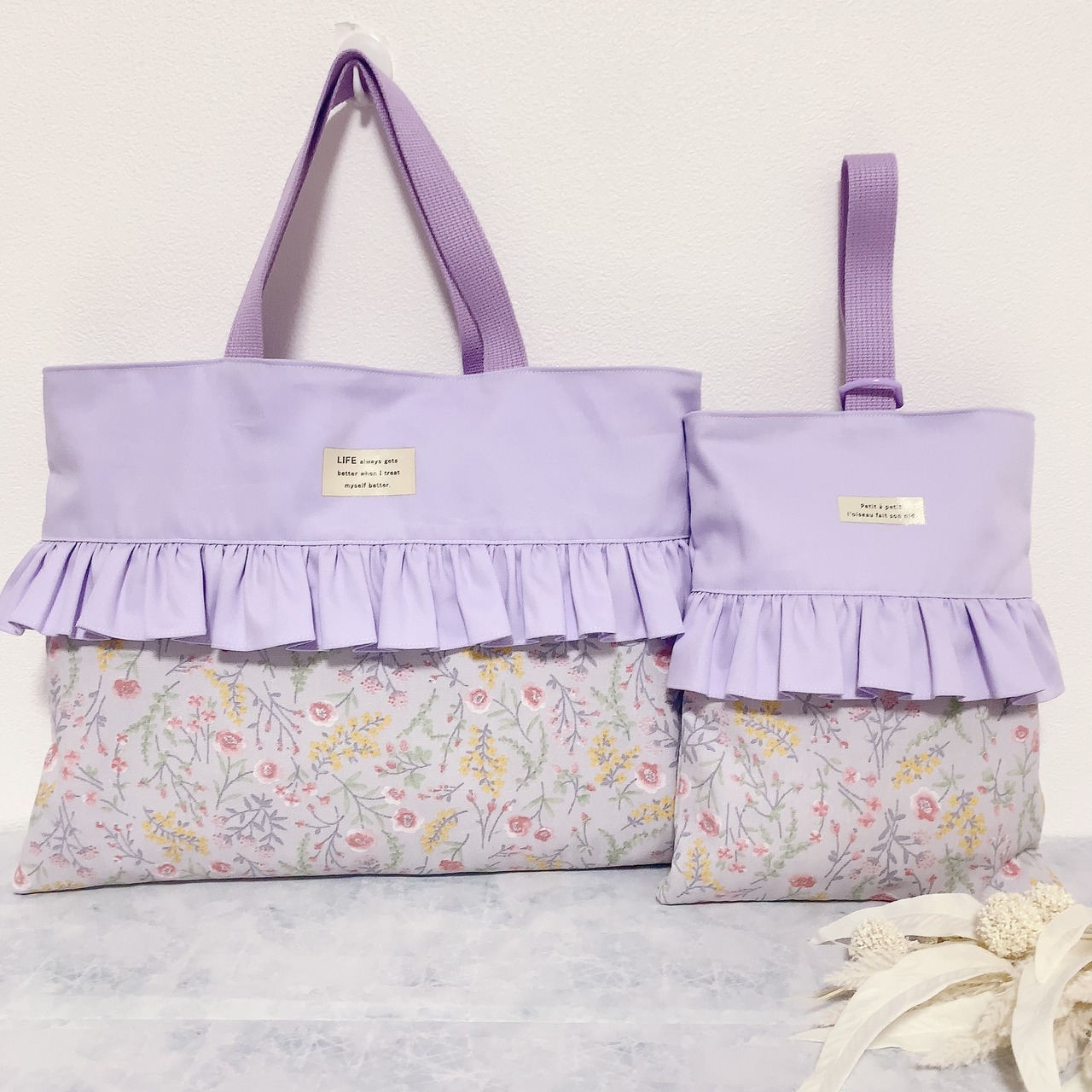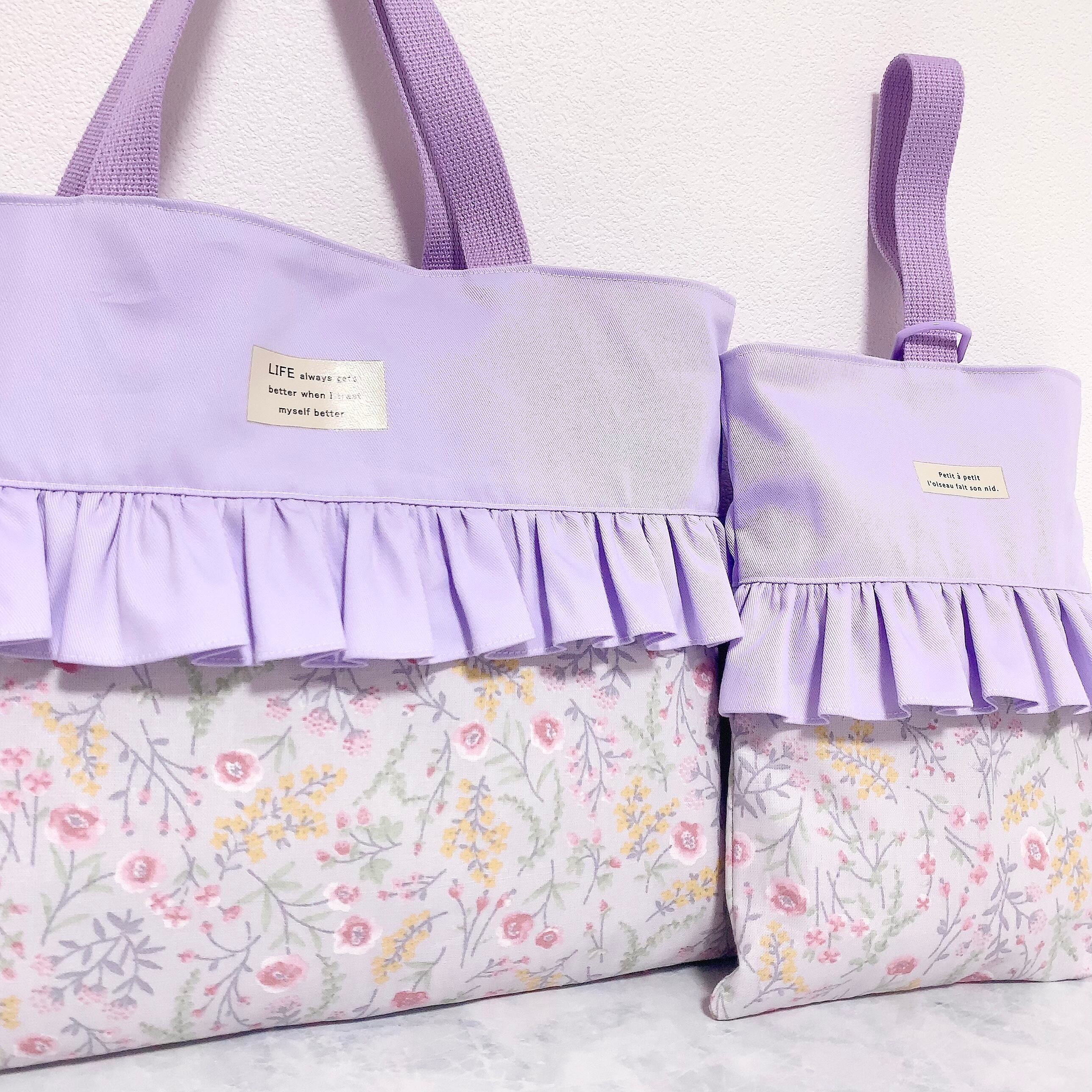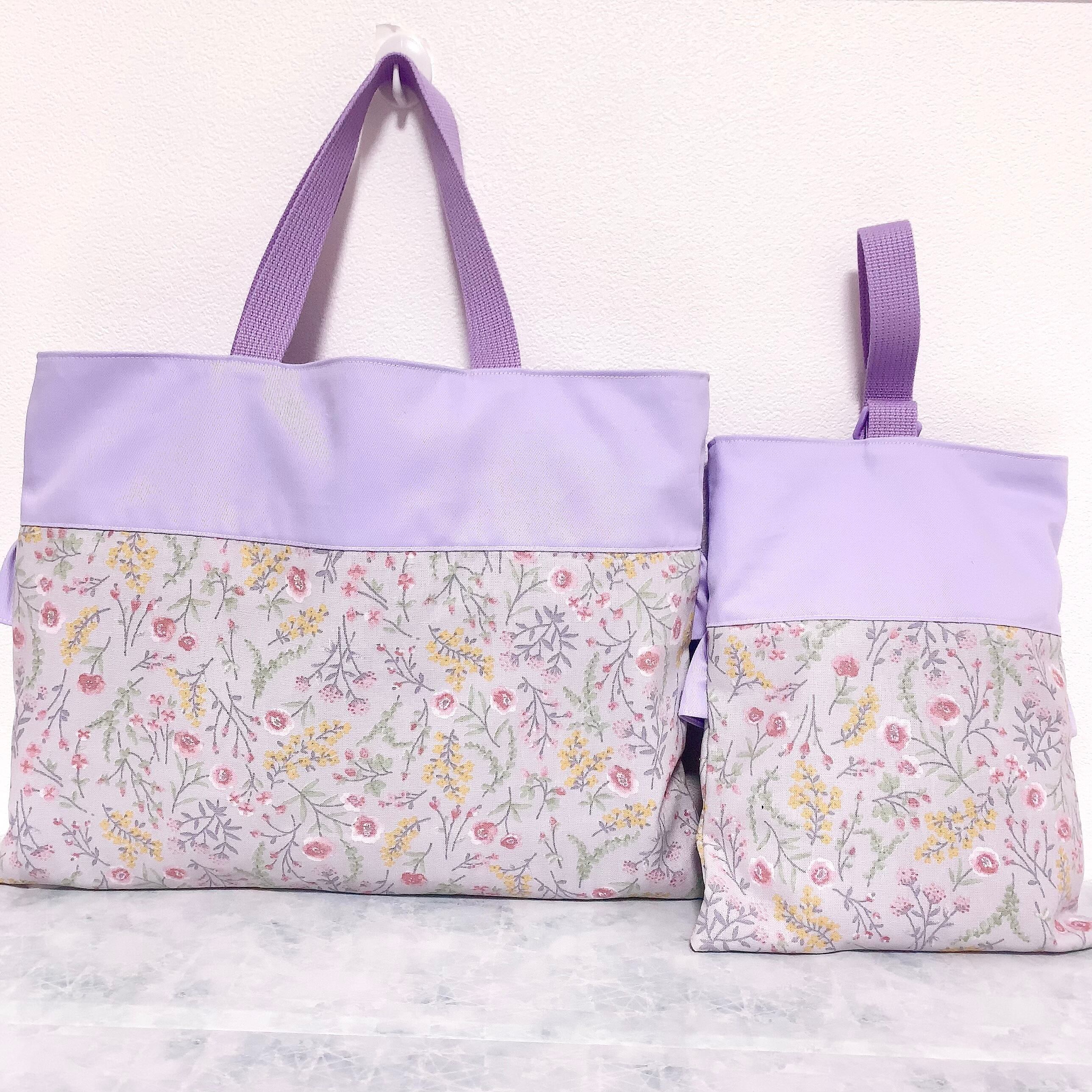 【完成品】2点セット レッスンバッグ 上履き入れ 花柄