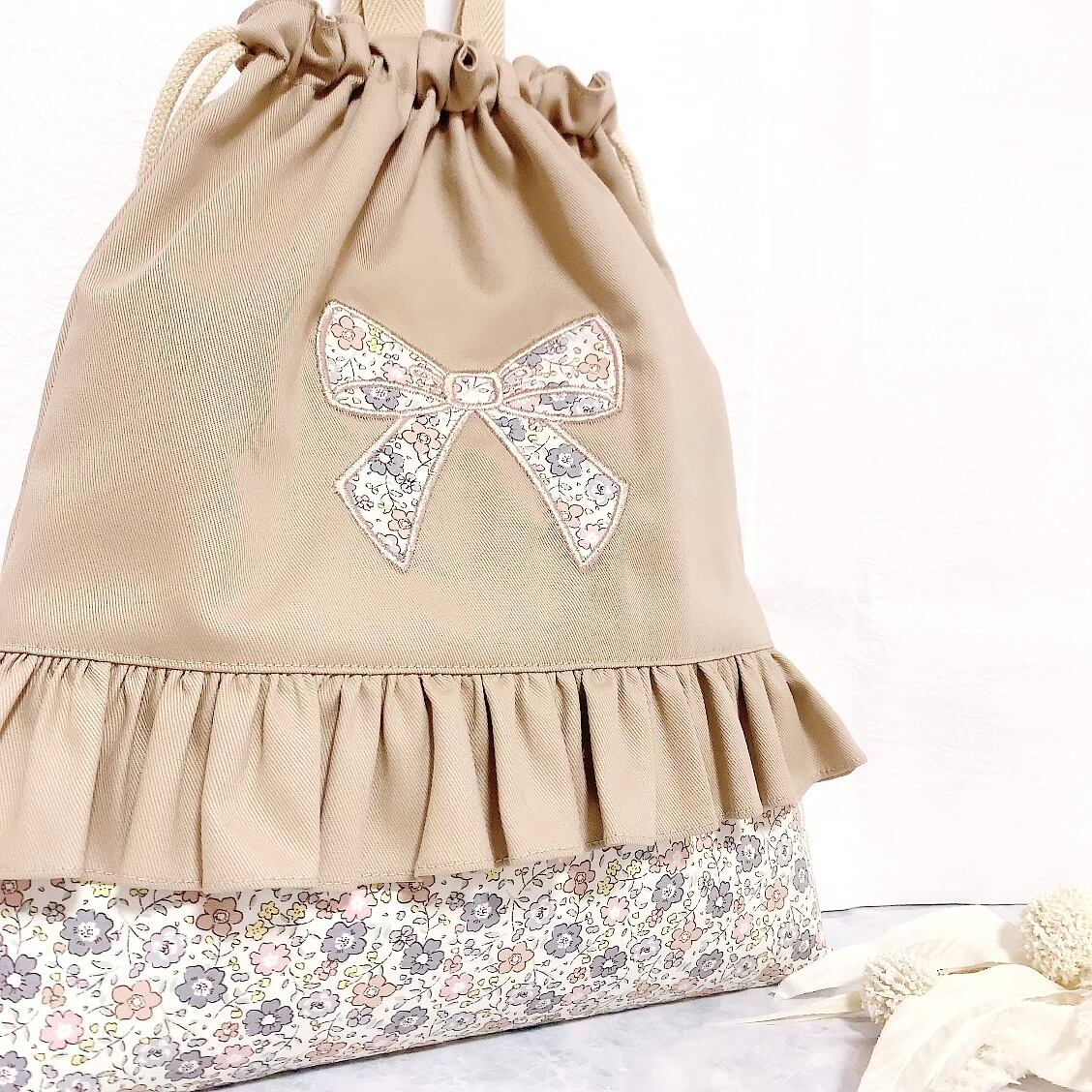 大きな リボン の刺繍が目を引く、